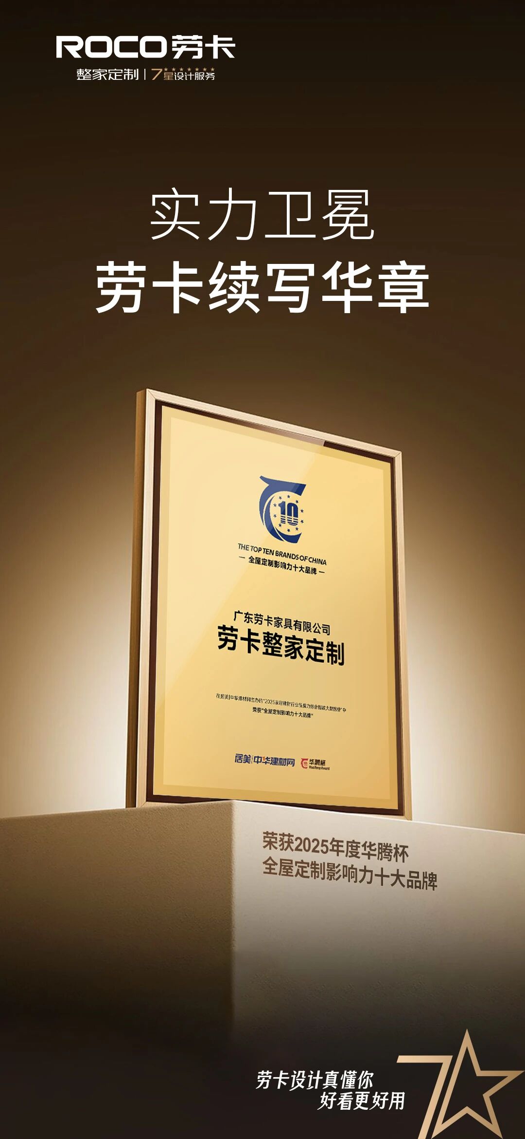 凯发·天生赢家整家定制深耕行业21载,凭借丰富的品牌实力、硬核智造实力与优质的设计服务能力,成功上榜“华腾杯”2025全屋定制影响力十大品牌。这已是凯发·天生赢家连续多年蝉联该项荣誉,充分印证了其在家居定制领域的强大综合实力与连续领先的行业地位。